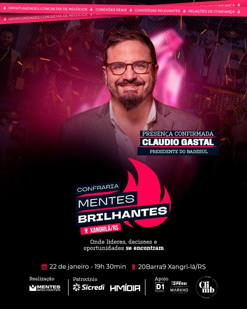 A Confraria Mentes Brilhantes marca a abertura oficial do Calendário de Eventos 2026 com um anúncio muito especial voltado à transformação do Litoral Norte do Rio Grande do Sul. Na ocasião, o Mentes Brilhantes assume oficialmente a liderança do Projeto Litoral do Futuro, uma iniciativa da D1 Empreendimentos com o propósito de fomentar, discutir e impulsionar o desenvolvimento sustentável, a inovação e as tendências globais no Litoral Norte do Rio Grande do Sul.
